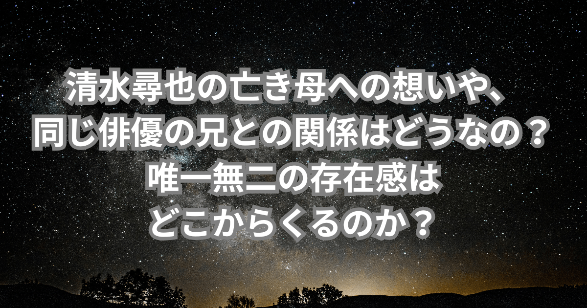 清水尋也さんの4歳年上の兄・尚弥さんがいます。尚也さん主演の映画『からっぽ』の試写会で、当時のマネージャーさんに誘われたそうです。